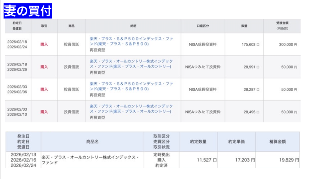 次に妻の口座の買付です。