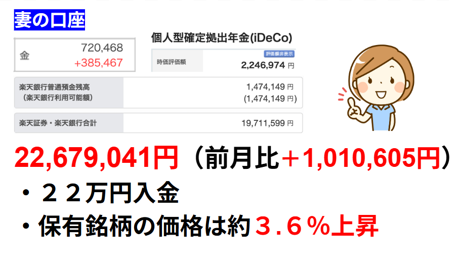 メインで運用しているeMAXISSlimS&P500とオールカントリーの基準価格が3%強上昇したので夫婦とも好調でした。