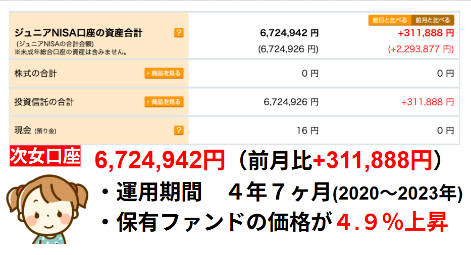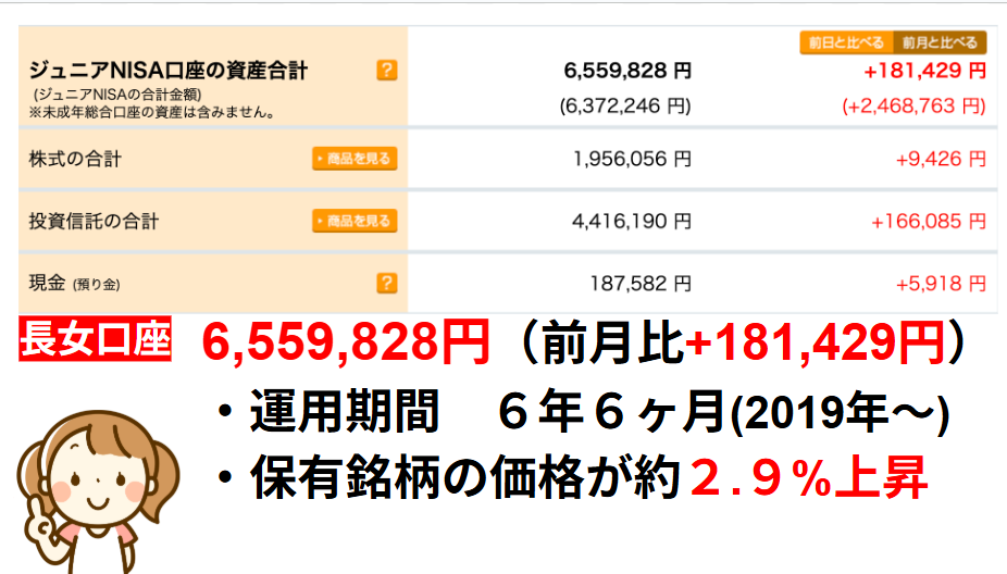 ジュニアNISAは2人とも前月比プラスとなりました。