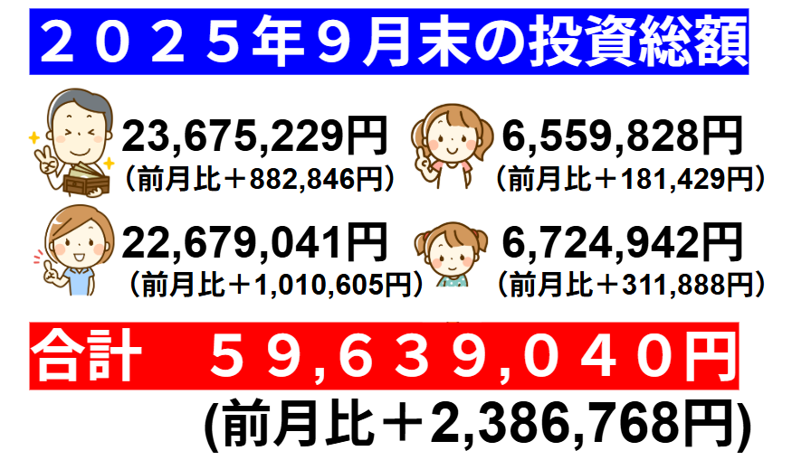 今回は妻の口座と運用中のジュニアNISA口座を含めた家族全体の投資額を公開します。