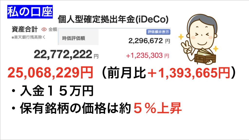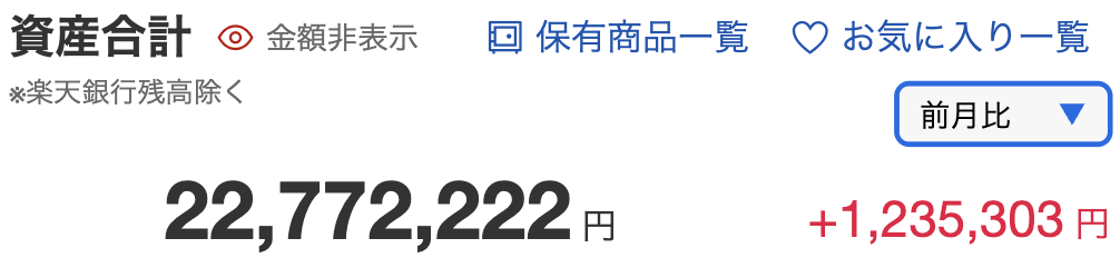 上記がidecoを除いた8月末時点の投資額です。22,772,222円