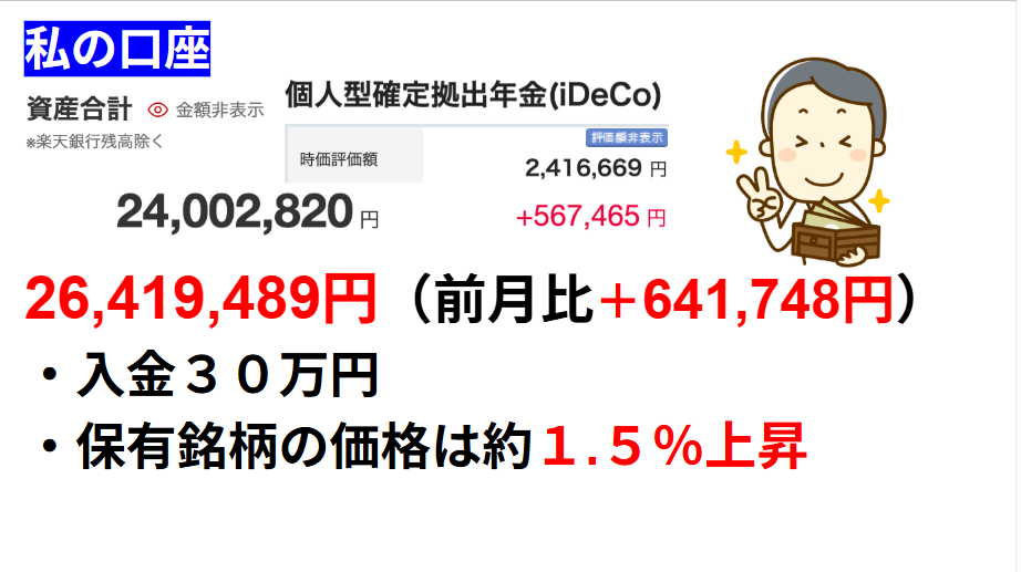 その入金額を除くと約34万円のプラスなので、保有銘柄の価格が約1.5%上昇した計算になります。