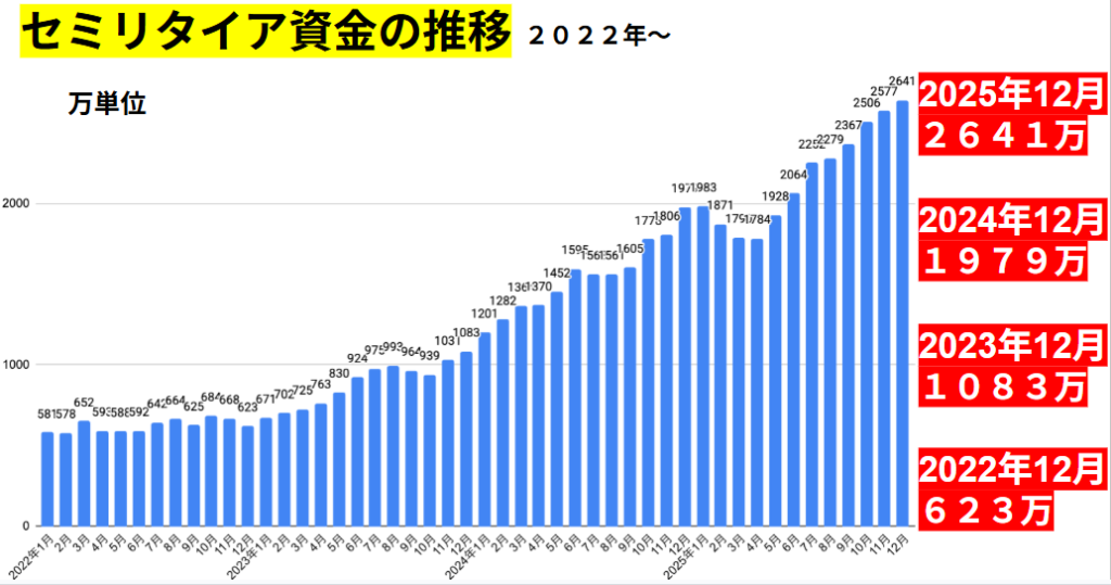 5月から前月比+が続いています。年間で+662万となりました。2025年は出来過ぎですね。