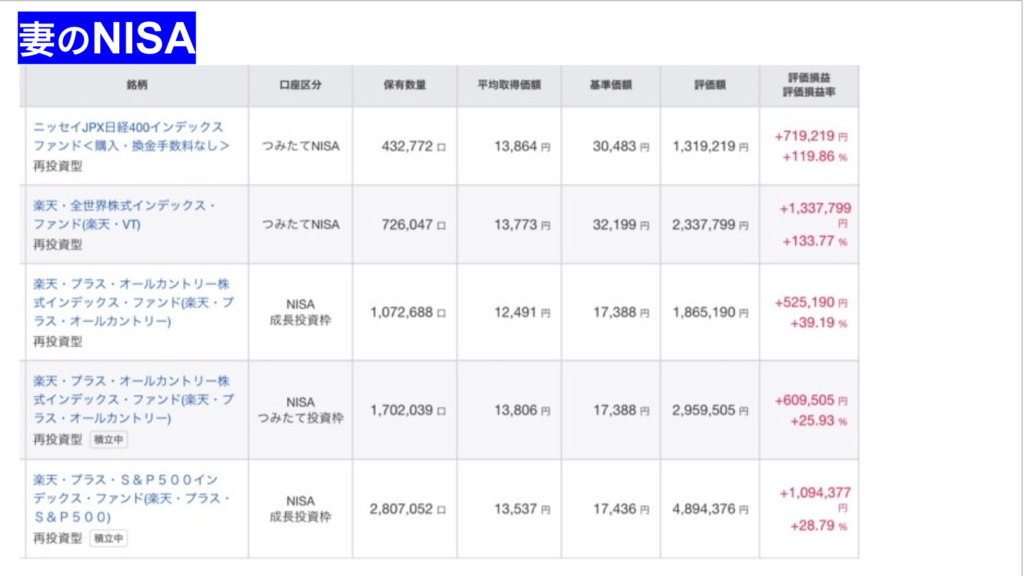 夫婦それぞれの口座とジュニアNISA口座すべての運用状況を公開します。